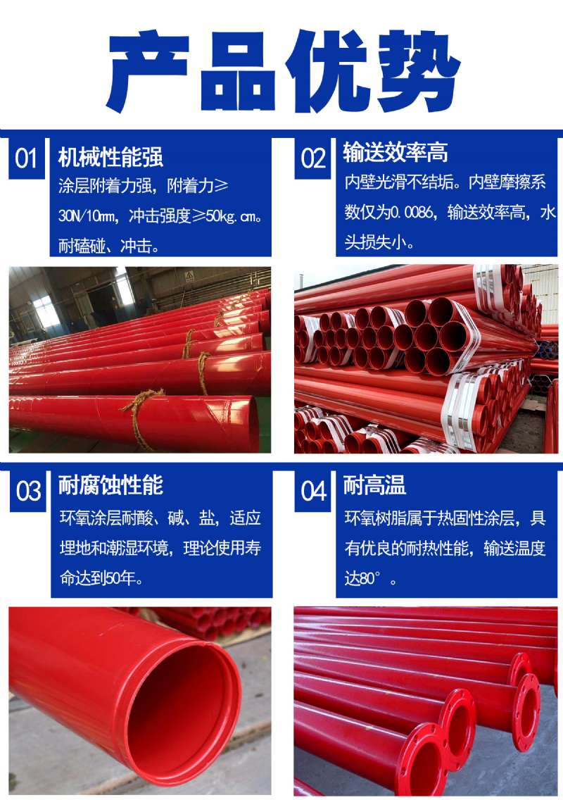 涂塑复合钢管涂层材质:环氧树脂(EP)适用于80℃以下的工作环境,钢管涂层有极高的附着力,其涂层硬度高、耐冲击性好,且有较好的耐化学腐蚀性能。涂塑复合钢管具有非常好的综合性能和耐腐蚀性,耐化学稳定性。 内外涂塑复合钢管是以焊接钢管为基材,采取喷砂化学双重